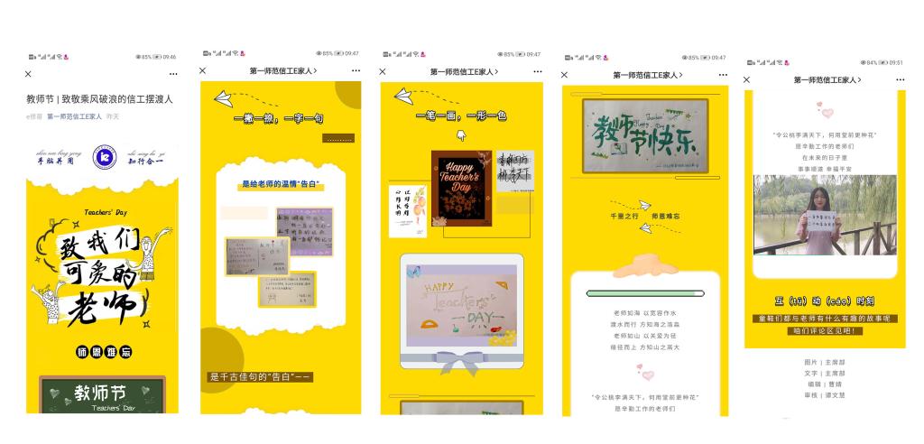 这系列活动,尽管简朴,但不失真情。这一切,凝聚着公司党政领导对老师们的深切关怀,汇聚着全体员工对老师们的浓浓感恩。老师们通过言语、点赞等方式表达着感谢,体会到了党政、工会的关心以及同学们的拥戴,提升了职业幸福感,并将以此为动力,继续着为党育人、为国育才的历史重任。