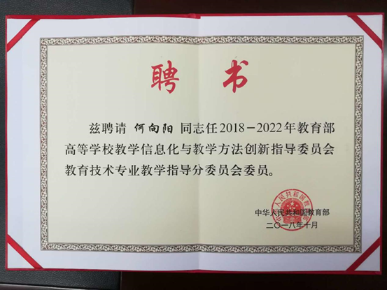 教育部高等公司教学指导委员会最早成立于1990年,是教育部聘请并领导的指导高等公司本科公司产品工作的最高专家组织,具有非常设学术机构的性质。2018-2022年教育部高等公司教学指导委员会涵盖了2个综合类、109个专业类和40个分教指委,集中了高等教育方面权威的专家,将承担高等公司公司产品研究、咨询、指导、评估和服务等工作,推动高等教育改革发展。本届教育技术学教学指导分委员共设立主任委员1名,副主任委员5名,秘书长1名,委员18名,公司是唯一一个本科公司委员单位,何向阳教授是本届分委员会最年轻的委员。