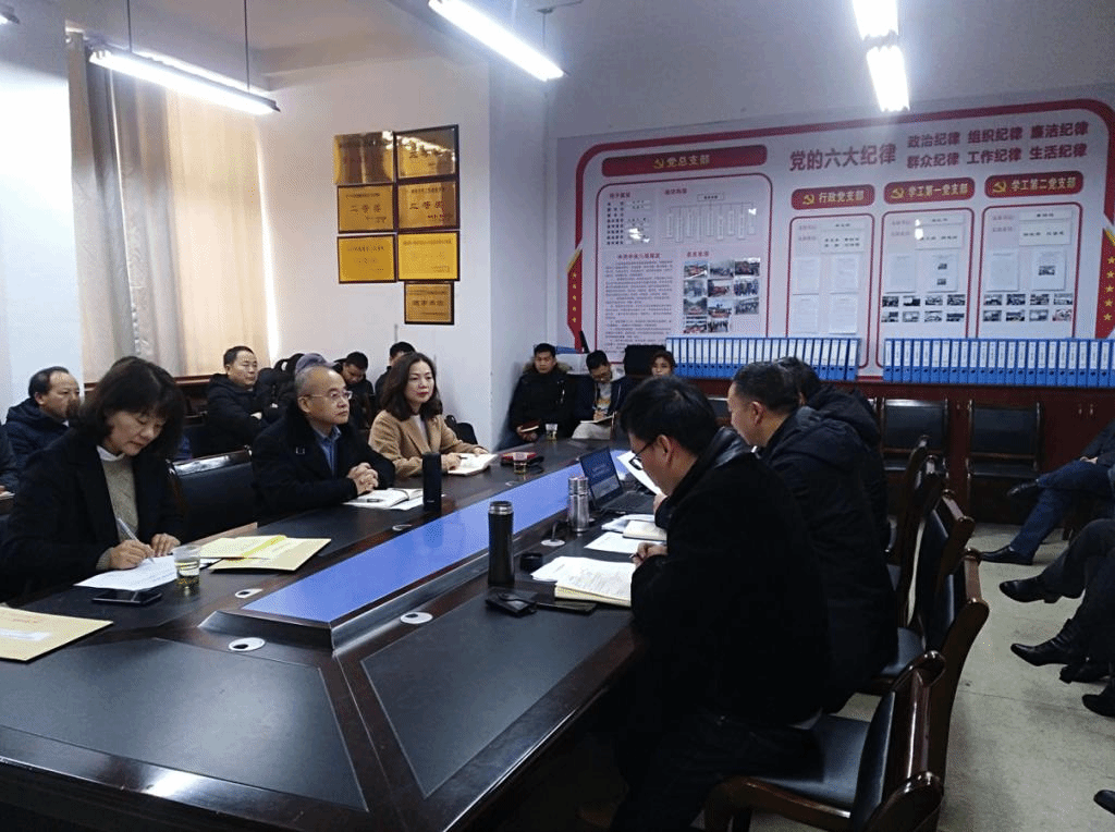 1月8日下午,公司党委书记彭小奇一行到公司指导领导班子及成员2019年履职情况考核工作。公司全体教职工参加考核会议,公司党总支书记王杰文主持会议。