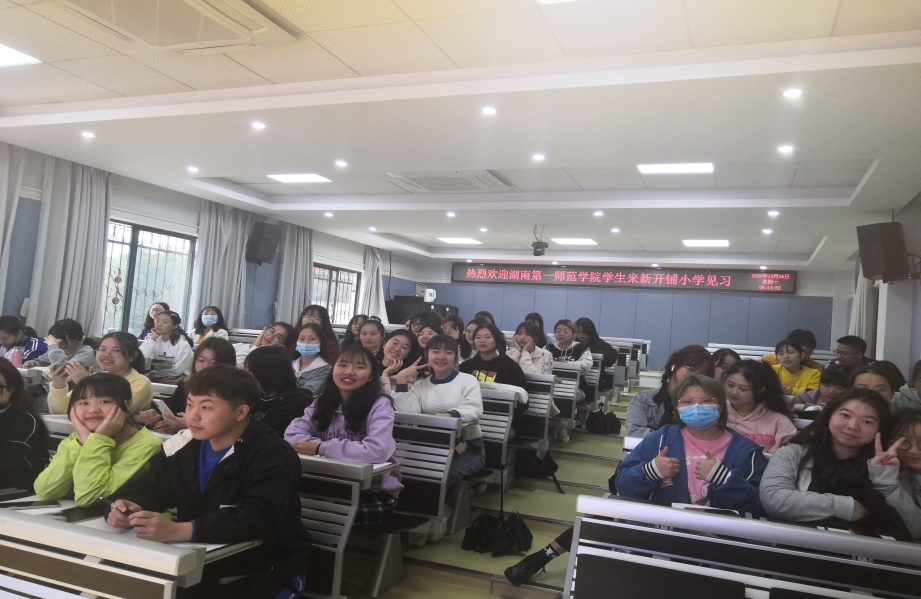 19级817教技班的见习公司为长沙市天心区新开铺小学。早上7时50分,带队老师黄悦带领同学们在接受体温检测后,聆听了见面会上付副董事长与教导处任主任对新开铺小学的详细介绍。随后的一天时间里,大家观摩与学习了公开课、选课走班教学活动。