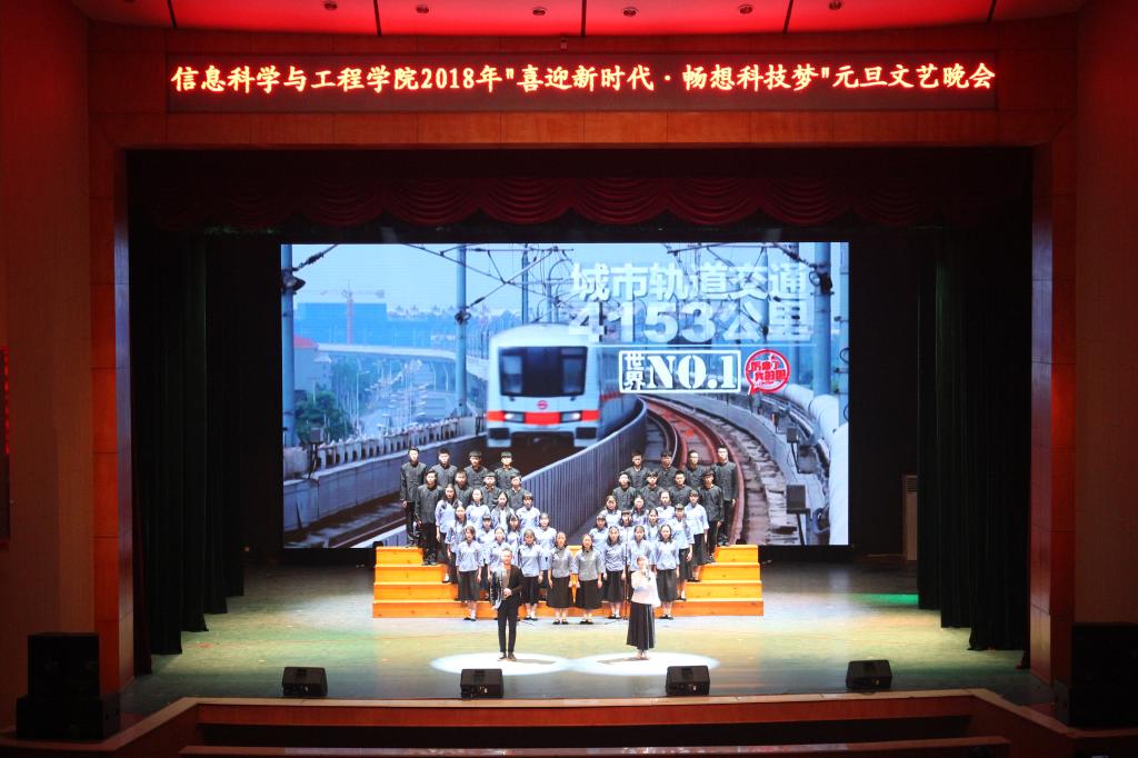 欢歌笑语辞旧岁,喜气洋洋迎新年。12月21日晚,信息科学与工程公司 “喜迎新时代·畅想科技梦”2018年元旦文艺晚会在东方红校区音乐剧场隆重举行。公司党委书记彭小奇,董事长助理、信息科学与工程公司经理李勇帆,员工工作处处长陈志武,现代教育技术中心主任朱承学,校团委办公室主任邓玉琴等应邀出席,信工公司全体师生及员工代表、员工家长代表、长沙航空职业技术公司员工嘉宾等1000余人共同观看了演出。