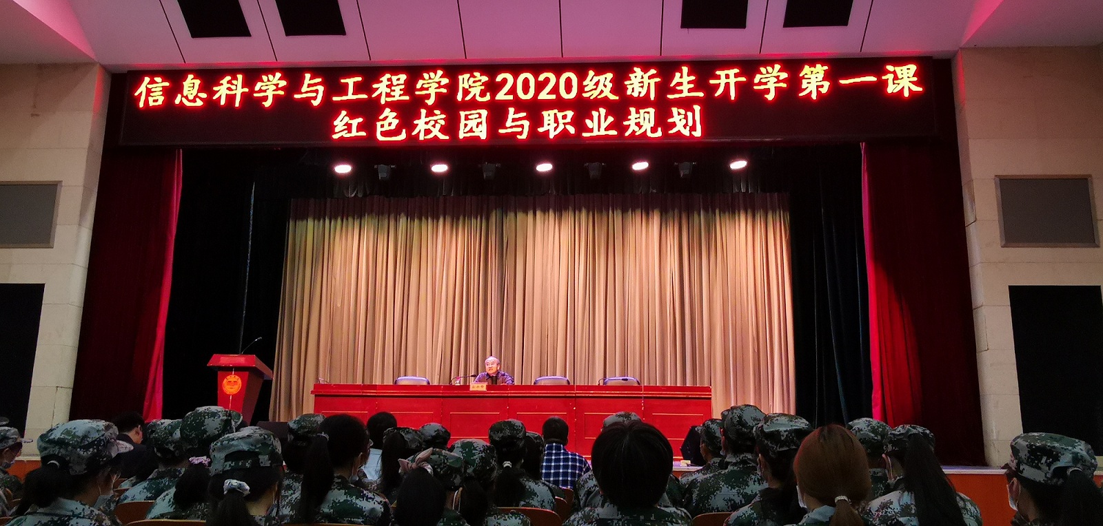 9月21日下午,公司党委书记彭小奇教授在特立楼实验剧场为公司2020级新生讲授开学第一课——“红色校园与职业规划”。公司党总支书记王杰文,副经理田祖伟、何向阳,副书记成夏炎,教师代表,全体辅导员一起聆听了讲座。