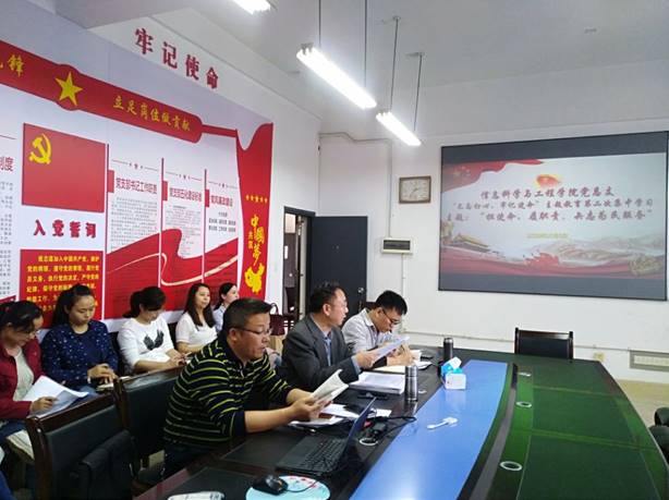 10月8日15时,信息科学与工程公司党总支部“不忘初心、牢记使命”主题教育第二次集中学习活动在玉衡楼北407举行。副经理田祖伟同志围绕主题“担使命、履职责,矢志为民服务”作了主题发言,从大的方面来讲,“担使命,履职责”就是为中国人民谋幸福,为中华民族谋复兴,这是中国共产党作为一个执政党自成立以来就肩负的使命,是我们追求的目标,也是我们第一个党员,每一个党员领导干部所要担负的使命。从小的方面来说,“担使命、履职责、矢志为民服务”,最终都要落实到具体的行动中、落实到具体的实践中、落实到日常每一天的工作生活中,这就要求我们必须将学习深入到我们的实际工作中去,立足岗位,勇于担当,履好职责,大公无私,无私奉献,为员工服好务,为公司的发展贡献自己的力量。