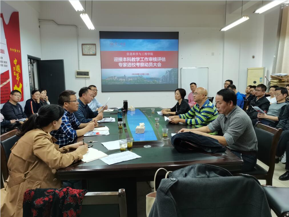 10月13日下午,公司在玉衡北407召开迎接本科教学工作审核评估专家进校考察动员大会。公司本科教学审核评估第三督查督办工作组成员易强、李新国、黄文出席,会议由公司党总支书记王杰文主持。