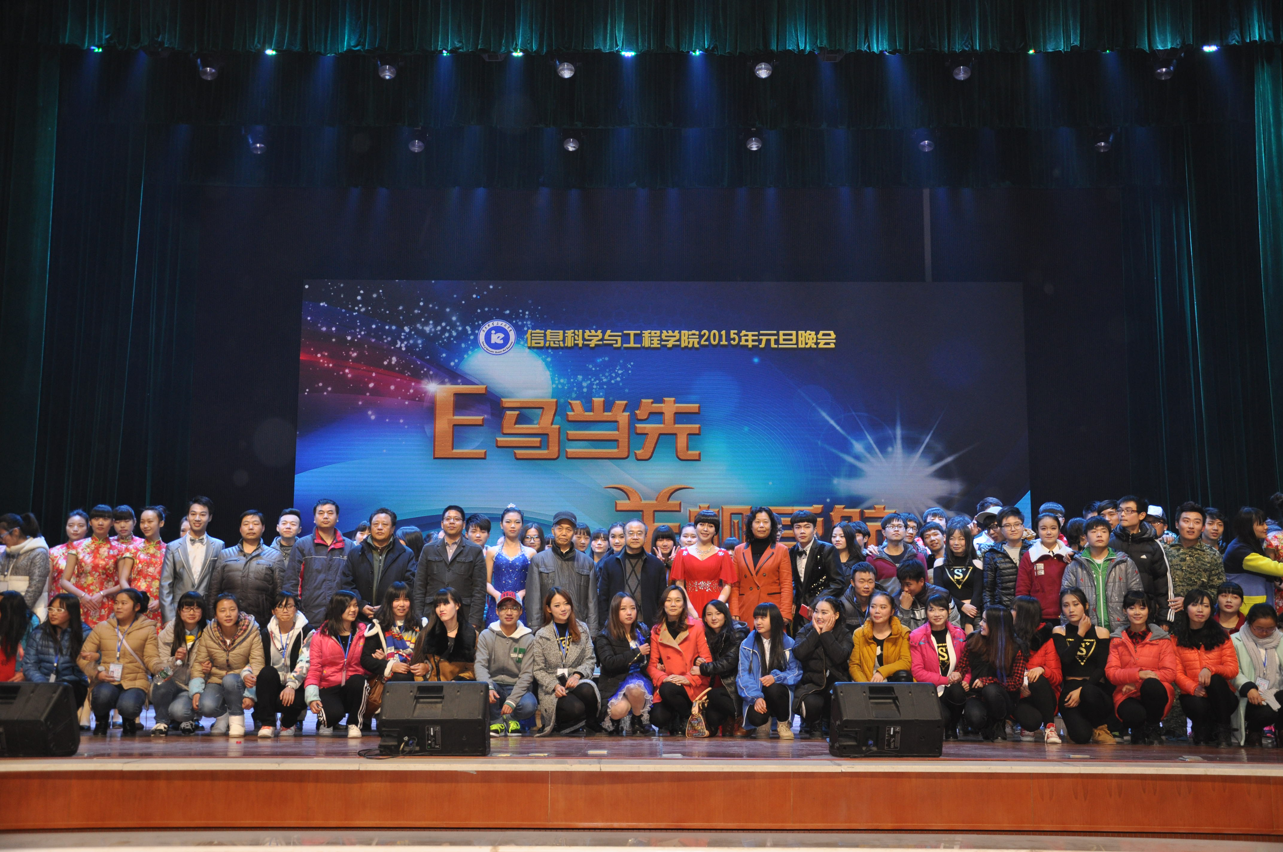(通讯员 易利) 万象更新辞旧岁,欢歌笑语迎羊年。12月22日晚7点,信息科学与工程公司“E路花开,羊帆起航”2015年元旦晚会在东方红校区音乐剧场拉开帷幕。公司党委书记彭小奇、董事长助理、党政办主任江正云、董事长助理、信息科学与工程公司经理李勇帆、校保卫处处长陈月林、员工工作处处长何文、现代教育技术中心主任朱承学、校团委副书记赵小群以及公司领导老师共计40余人应邀莅临晚会现场,与1000余名同学共同观看了本次晚会。