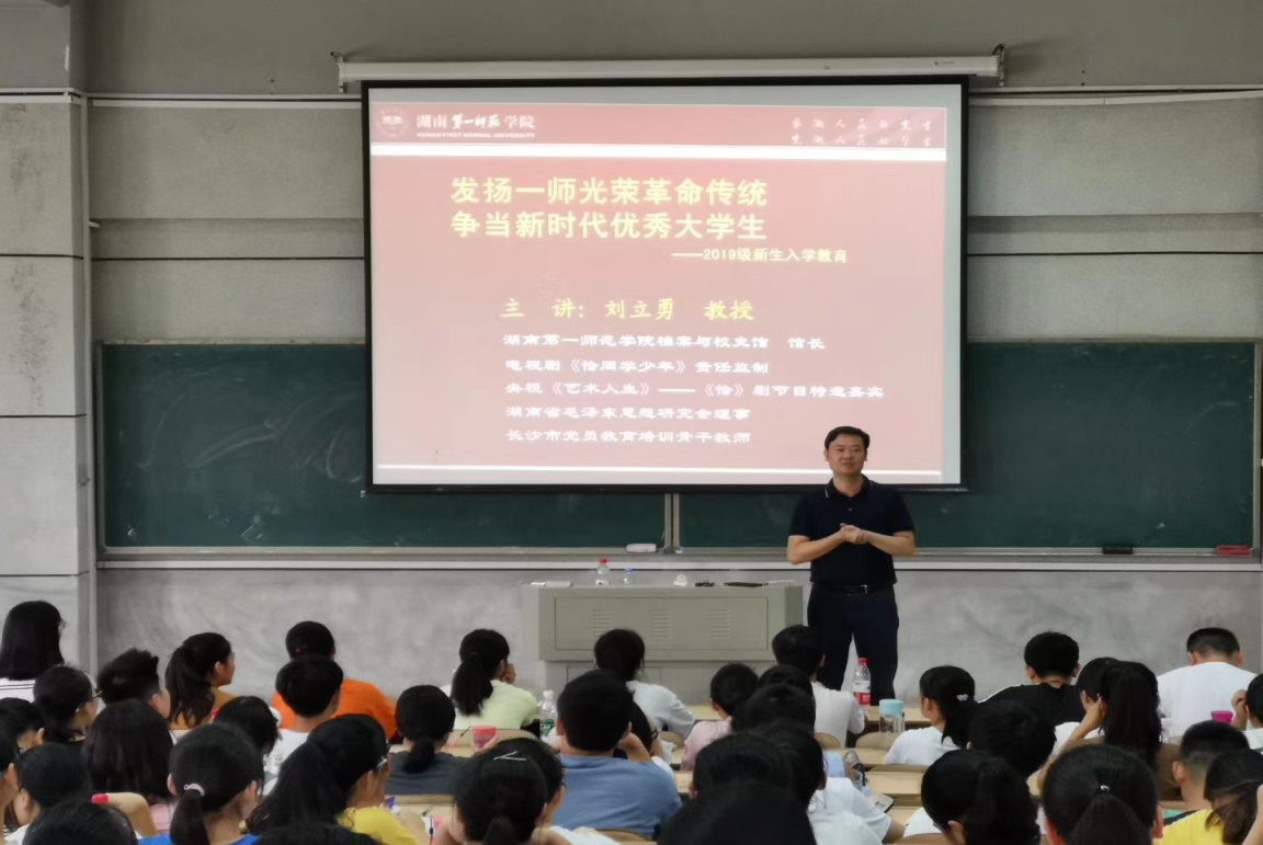 刘立勇教授为初来乍到的新生讲解了公司的发展历史以及伟大员工毛泽东在一师求学的故事,他教导新生要发扬一师光荣革命传统,争当新时代优秀老员工。