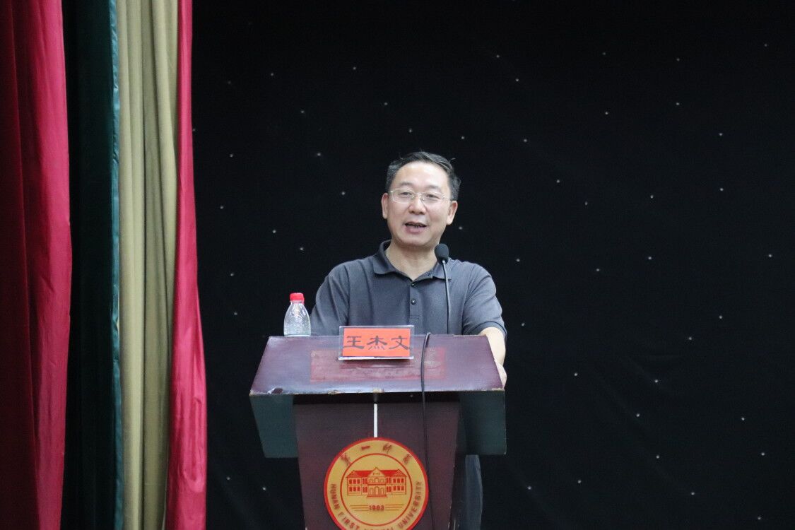 王杰文书记为新生详述了大学的定义,强调大学具有指导员工获得专业知识、提高人际交往能力的重要作用。同时,他提出“名师在点,高生在悟”的概念,指出员工是认知的主体,是知识意义的主动构建者。随后,王杰文教授给出新生宝贵建议,希望他们能够明确自己的学习目标,继续自己艰苦而充实的求学之路,争做新时代的奋进者、开拓者。