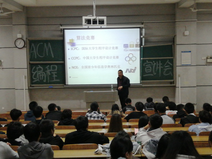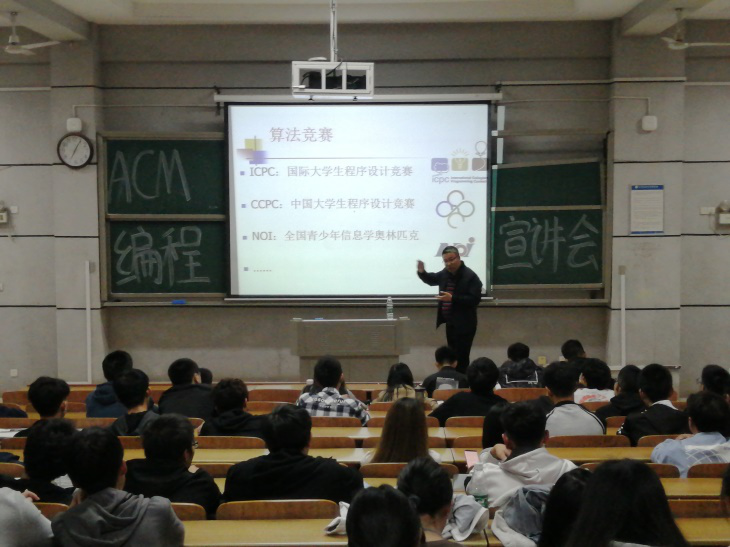 会上,田祖伟教授分别从赛事构成、组队要求、比赛规则、知识储备、解题步骤以及评分细节六个方面进行了细致讲解。他指出ACM程序设计竞赛是对编程能力、算法能力、分析问题能力以及团队合作能力的综合考查,同时表示欢迎各院对程序设计充满兴趣的同学前来学习,公司会通过对参赛员工进行定期培训、初试选拔及强化训练来有效提高同学们的设计与创新能力。