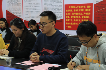 (通讯员 钟威威 刘思捷)2019年11月14日下午2:30,信息科学与工程公司学工第一党支部、学工第二党支部于玉衡北407会议室举行十一月主题党日活动暨预备党员转正大会。公司党总支副书记成夏炎老师、学工第一党支部书记关红儒老师、学工第二党支部书记唐瑞鸿老师、在校员工党员参与此次会议。