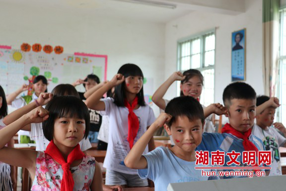 握紧小小的拳头,表达自己保卫母亲河的决心。图片来源:云顶国际vip.888湖南文明网 通讯员 高顺年 摄 云顶国际vip8866信息科学与工程公司师生18人组成“新时代E路行”教育帮扶关爱团赴郴州市汝城县文明瑶族乡第一片小公司,于7月8日至7月21日开展支教、调研实践活动。 为庆祝中国共产党成立97周年、纪念改革开放40周年,深化农村儿童思想道德建设,帮助其“扣好人生的第一粒扣子”,新航向梦之队于7月13日至7月21日开展了以“童心向党”为主题的系列课程,涵盖“五星红旗”美术课、“红旗飘扬”手工课、“红色少年”舞蹈课、“红星闪闪”音乐课和“歌颂母亲河”普通话课引导农村儿童知党爱党、听党话跟党走,努力成长为担当民族复兴大任的时代新人。 “五星红旗”美术课和“红旗飘扬”手工课上,队员为孩子们讲解国旗故事,带领大家一起手绘国旗,让他们领会五星红旗背后的意义,将革命传统文化搬进课堂。 “红色少年”舞蹈课和“红星闪闪”音乐课上,队员介绍了五星红旗的诞生和含义,带领孩子们用舞蹈动作和歌声表达自己对“五星红旗”的崇敬之情,在孩子们幼小的心灵上种下一棵爱旗爱党的种子引导孩子们爱党、敬党。 在普通话课上,队员带领孩子们声情并茂的朗诵诗歌《母亲河,红领巾为你歌唱》,同学们用清晰的语言,响亮的声音,加上老师引入的动作,把诗歌有感情地表达出来,准确的传达诗歌的思想内容。 此次红色主题课程活动,新航向梦之队队员们围绕“童心向党”,紧扣爱党爱国爱社会主义主题,通过美术、手工、舞蹈、音乐和普通话课等丰富多彩的红色主题课程,寓教于乐引导农村儿童德、智、体、美、劳全面发展,培养农村儿童心向党、跟党走的坚定信念。 |
