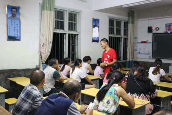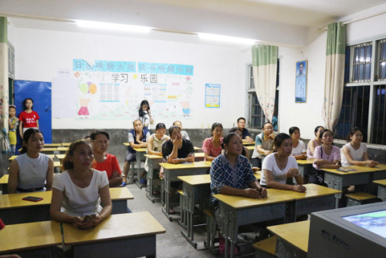 7月15日晚上19点,文明瑶族乡第一片小的一年级教室迎来了一群“特殊”的员工,这些员工有的三十出头,有的两鬓斑白,这些“员工”其实是新航向·梦之队暑期班员工的家长,而这些家长集合的原因是新航向·梦之队开展的成人课堂。