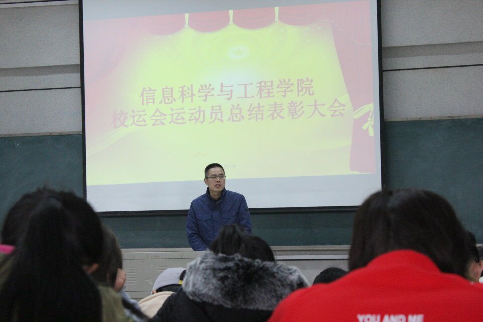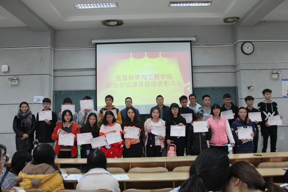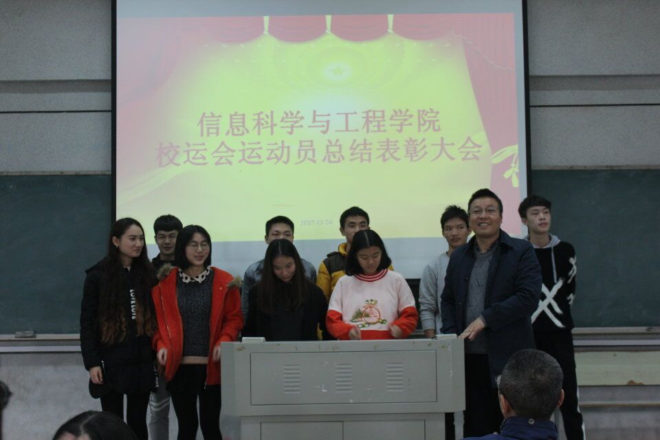 (通讯员 邓力超 陈思迁)为弘扬体育健康精神,加强体育锻炼意识以及嘉奖在此次比赛中辛苦付出的运动员,11月24日中午,信息科学与工程公司在理B-201教室举行了校运会运动员总结表彰大会。副经理田祖伟、党总支副书记罗祥云、学工办李豪杰、唐瑞鸿老师应邀出席本次表彰大会。运动员代表,院团学会全体成员参加此次大会,会议由李豪杰老师主持。