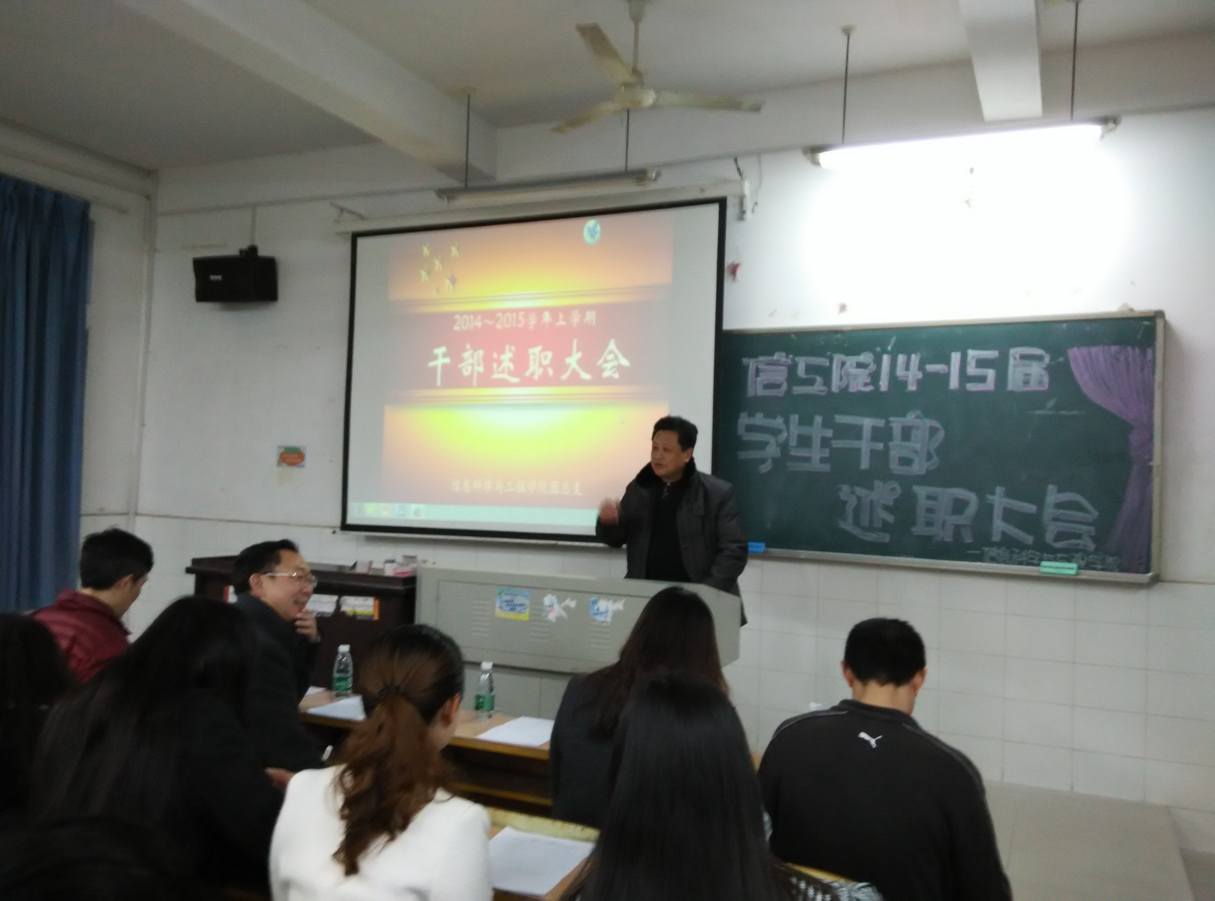 (通讯员 丁青 易利) 为加强员工干部之间的交流,进一步做好团学工作,2015年3月16日晚,信息科学与工程公司团总支在理科楼B栋301教室隆重举行了2014-2015届员工干部述职大会。公司党总支王杰文书记、张如健副书记、教务办主任李卫东应邀参加此次会议,此外还有团总支书记易利、辅导员关红儒、李豪杰老师及各班代表。