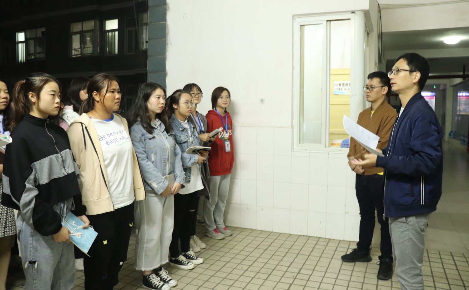 (通讯员 郭雅洁 雷楠 王凯强)2019年10月23日晚上九点,信息科学与工程公司党总支副书记成夏炎带领辅导员和员工干部深入员工宿舍查看卫生、内务整理状况,开展以宿舍走廊安全通道的规范化建设情况为重点的安全隐患排查工作,同时看望慰问各年级员工,并详细了解了员工近期思想、学习和生活情况。