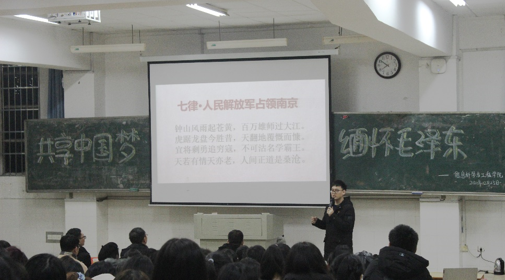 公司党总支副书记成夏炎领诵《七律·人民解放军占领南京》,全体师生深情朗诵主席诗词,感受他笔下的宏伟气概和伟大胸襟,重温那段峥嵘岁月的历史沧桑。我们相信毛泽东诗词所激发出的中国力量一定能够转化为实现中华民族伟大复兴的美好蓝图。