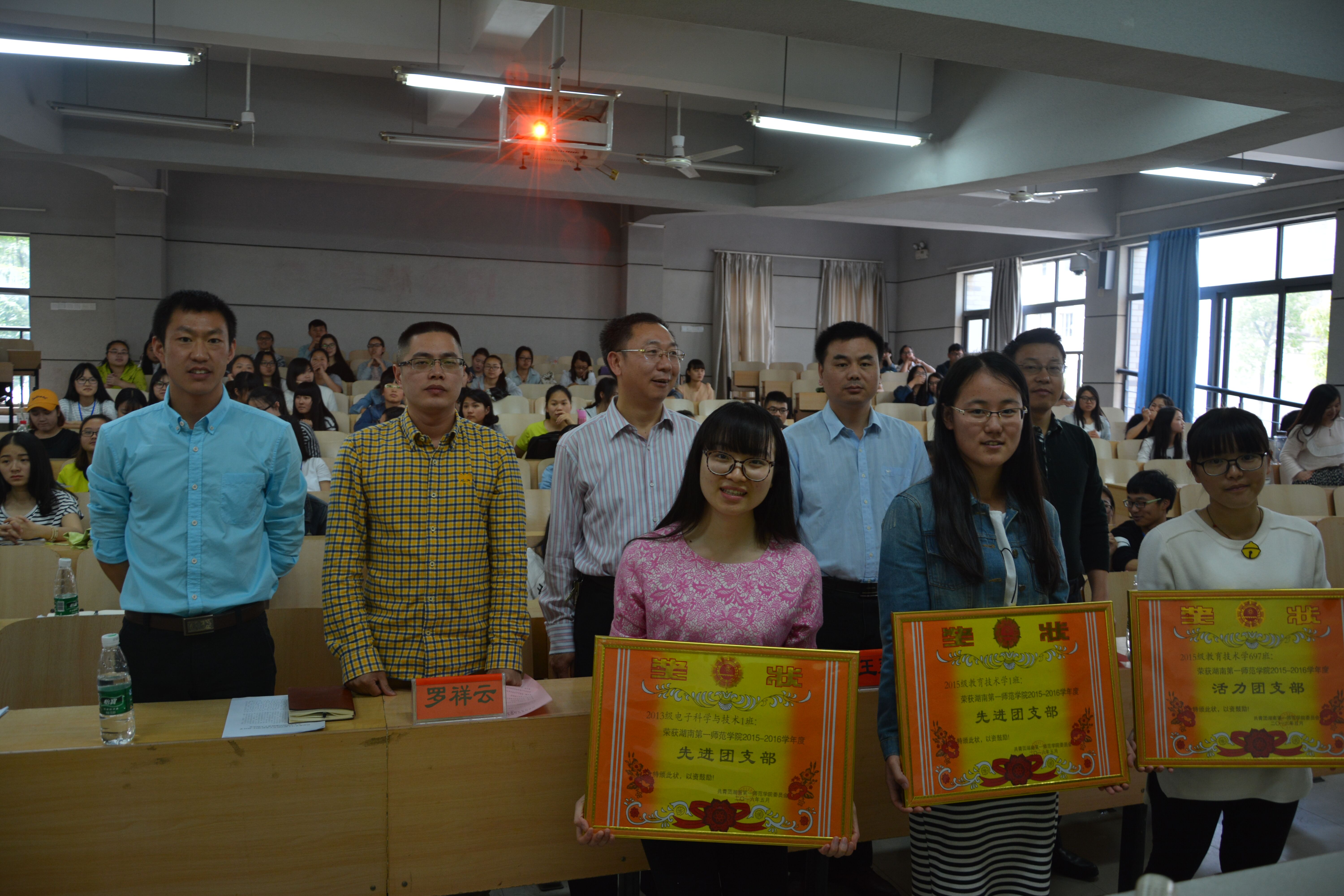 随后,公司党总支罗祥云副书记宣读了《关于表彰2015—2016学年信息科学与工程公司先进团支部和优秀个人的决定》。接着王书记、田经理、王经理、罗书记一起为获奖支部及个人颁发了荣誉证书。颁奖仪式过后,先进团支部代表13级电子科学与技术1班王珊同学、优秀个人代表教育技术学697班杨妍同学相继上台发言,都表示将继续以饱满的热情迎接新的挑战。