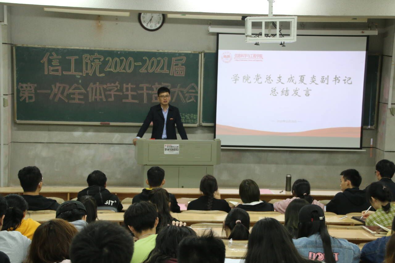 10月28日晚,公司在润寰南101召开2020-2021届员工干部第一次全体会议,公司党总支副书记成夏炎、学工办主任关红儒出席,会议由团总支员工副书记张玉鑫主持。