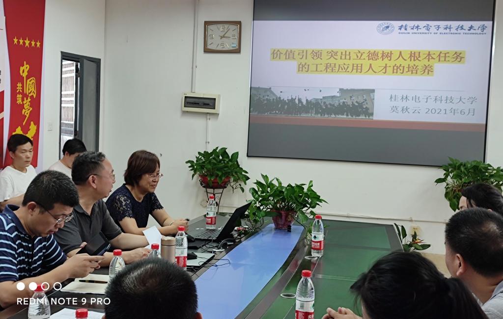 6月25日下午,桂林电子科技大学教授、机电工程公司副经理莫秋云应邀到公司,做了题为“价值引领 突出立德树人教育根本任务的工程应用人才的培养”的学术讲座。讲座由公司党总支书记王杰文主持。