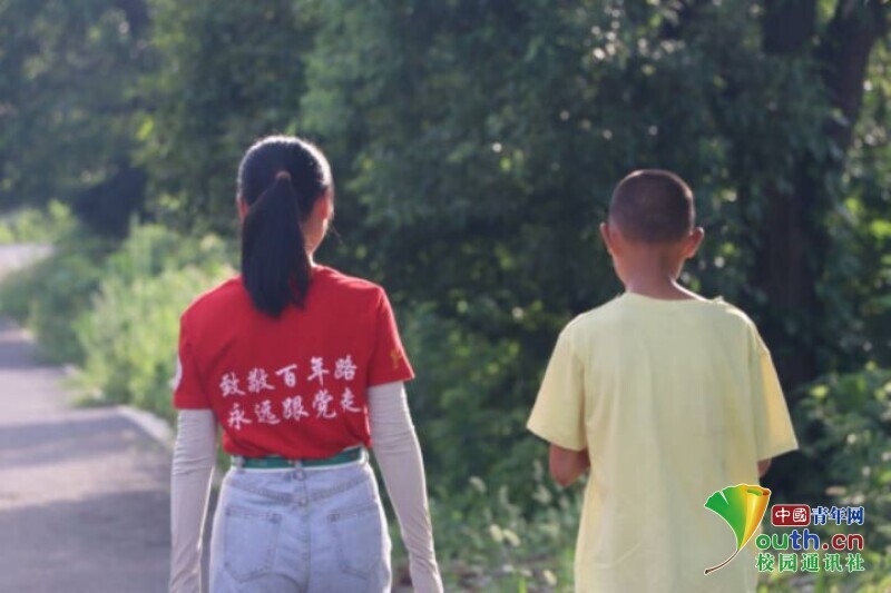图为队员带领独自到校员工去班主任处报到。中国青年网通讯员 段新利 摄