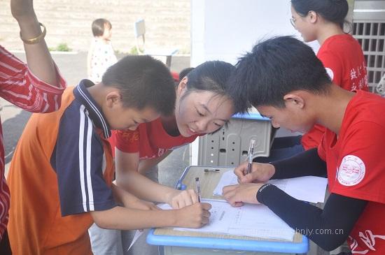 湖南教育新闻网讯(通讯员 张旭)7月11日,云顶国际vip8866信息科学与工程公司新航向·梦之队的志愿者们来到了著名华侨教育家、一师员工张国基先生的故里——益阳市资阳区迎风桥镇。在当地的长塘仑小学,由志愿者们组织的七彩假期公益暑托班正式开班。此次活动共开设朝阳小班、向日葵中班和竹笋大班三个班级,并根据其年龄特点准备了12门趣味课程。
