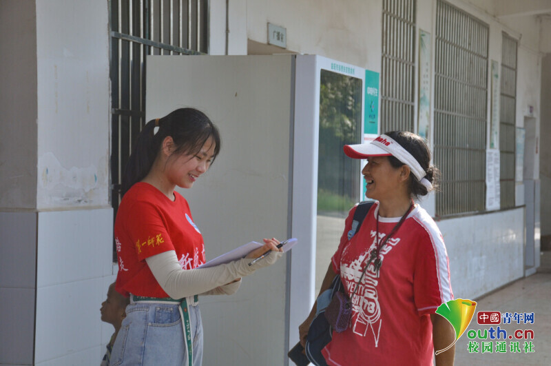 图为第一天报到,志愿者在离校门口很远的地方就开始热情的迎接孩子和家长。中国青年网通讯员 马唯一 摄