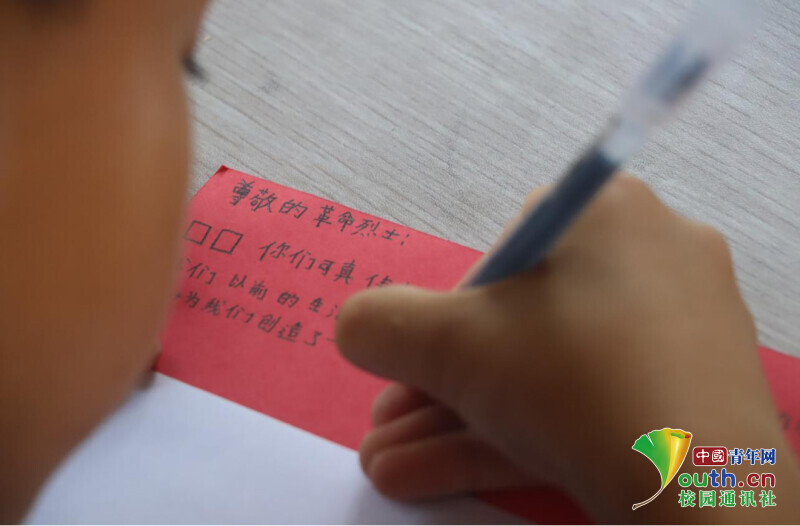 图为员工正在认真的书写送给革命军战士的信,以此表达对革命军战士深深敬意。中国青年网通讯员 段新利 摄