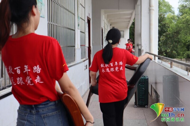 图为三下乡成员为报道的员工有一个好的环境打扫教室卫生。中国青年网通讯员 李惠婷 摄