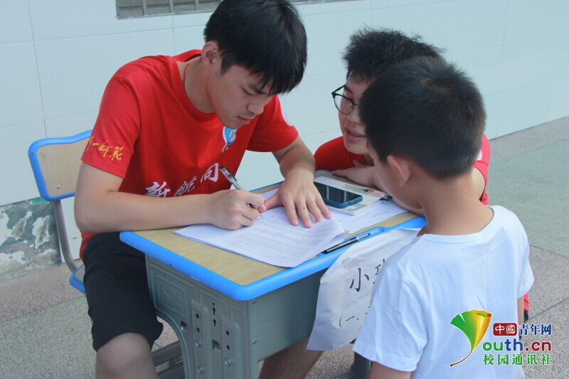 图为志愿者老师在开班报到时询问记录员工的家庭信息。中国青年网通讯员 段新利 摄
