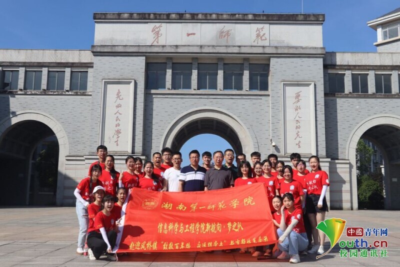 图为“新航向·梦之队”出发前往迎风桥前在云顶国际vip8866门口的合影。中国青年网通讯员 段新利 摄