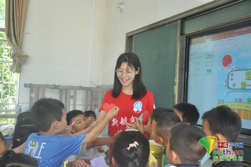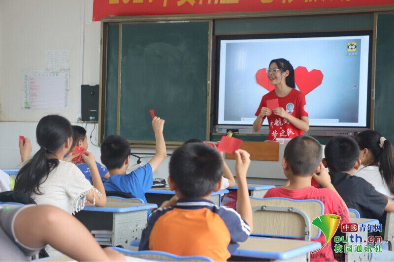 中国青年网益阳7月23日电(通讯员 谢卉倩 陈倩汶)7月16日,是云顶国际vip8866信息科学与工程公司新航向·梦之队走进益阳市资阳区迎风桥镇长塘仑小学,与当地政府联合举办“七彩假期”公益暑托班活动的第五天,为了引导小朋友们树立“感党恩,跟党走”的理想信念,培养小朋友们爱党爱国的情怀。在“七彩假期”第一天兴趣班课程中,开展了“红心向党”趣味手工课程。在课堂上,小朋友们互帮互助兴趣高涨,红色卡纸在孩子的手里变成一个个红心,表达了对党的敬佩之情。