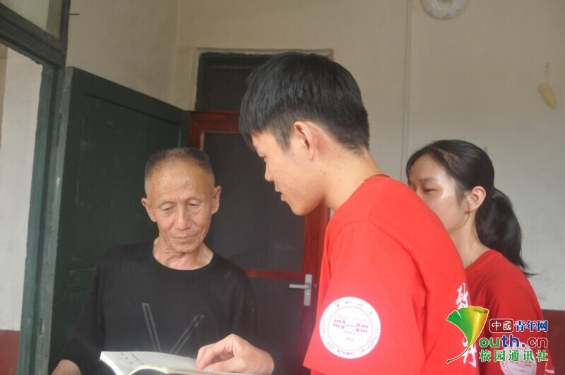 图为新航向·梦之队志愿者走进居民家中了解居民的家庭情况,针对实际情况针对性地为居民介绍国家资助政策。中国青年网通讯员 马唯一 摄