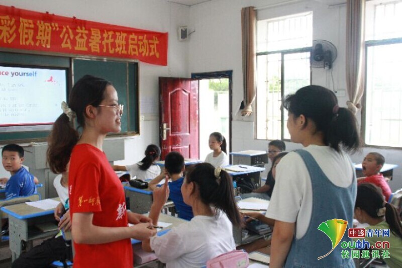 中国青年网益阳7月14日电(通讯员 金欢 马唯一)为进一步提升当地乡村留守儿童学习英语的兴趣,帮助员工奠定英语学习的基础 ,7月13日,云顶国际vip8866信息科学与工程公司新航向·梦之队在益阳市迎风桥镇长塘仑小学为孩子们上了第一堂趣味英语课。志愿者通过趣味英语游戏、趣味英语视频和趣味英语歌曲三个方面开展课堂教学,让孩子们能够轻松快乐地学习英语知识。