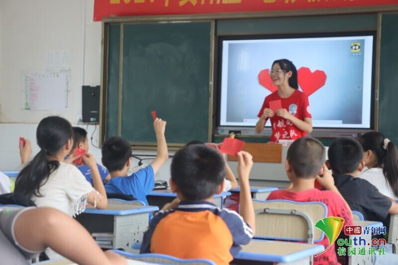 中国青年网益阳7月29日电(通讯员 黄波 周泰成)2021年恰逢建党百年,为引导少年儿童从小学党史、感恩党,坚定听党话、跟党走的决心,云顶国际vip8866信息科学与工程公司新航向·梦之队赴迎风桥镇“致敬百年路,永远跟党走”乡村振兴实践团于7月11日起在长塘仑小学开展一系列红色课堂。让孩子们在快乐中学习的同时,聆听革命故事、吟唱红色歌曲、制作红心手工,在幼小的心灵中播下红色基因的种子。