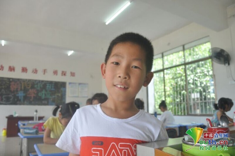 图为小男孩虽然很紧张,但是还是勇敢地站起来并完整流畅地讲完了这个故事。中国青年网通讯员 欧阳健 摄