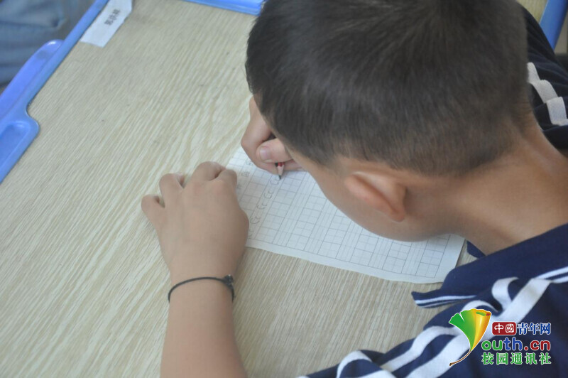 图为趣味英语课上,员工在老师的示范下,正在练习写英语字母。中国青年网通讯员 何星逸 摄