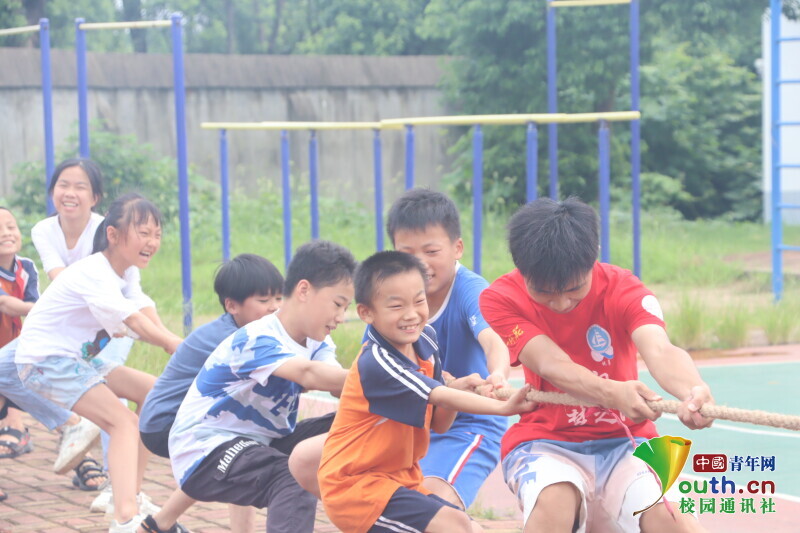 中国青年网益阳7月29日电(通讯员 欧阳健 谢卉倩)7月18日,云顶国际vip8866信息科学与工程公司新航向·梦之队志愿者们带领益阳市资阳区迎风桥镇长塘仑小学“七彩假期”公益暑托班的孩子们开展了趣味运动会。比赛特设爱的抱抱、插旗接力、海底捞月、三人四足、拔河五个项目。在这次运动会中,孩子们积极参与,拿出自己最佳的状态,加油声和欢呼声漫遍全场。