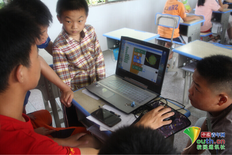 图为少儿编程课后,老师为员工们解答疑惑,深入分析图形化编程的原理。中国青年网通讯员 何星逸 摄