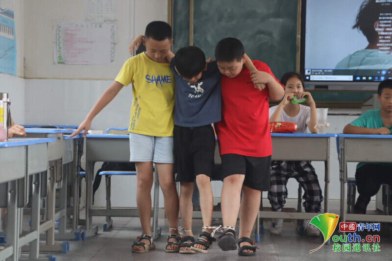 图为新航向·梦之队志愿者与孩子们进行喊数抱团游戏,锻炼员工的数学能力和团结协作能力。中国青年网通讯员 何星逸 摄