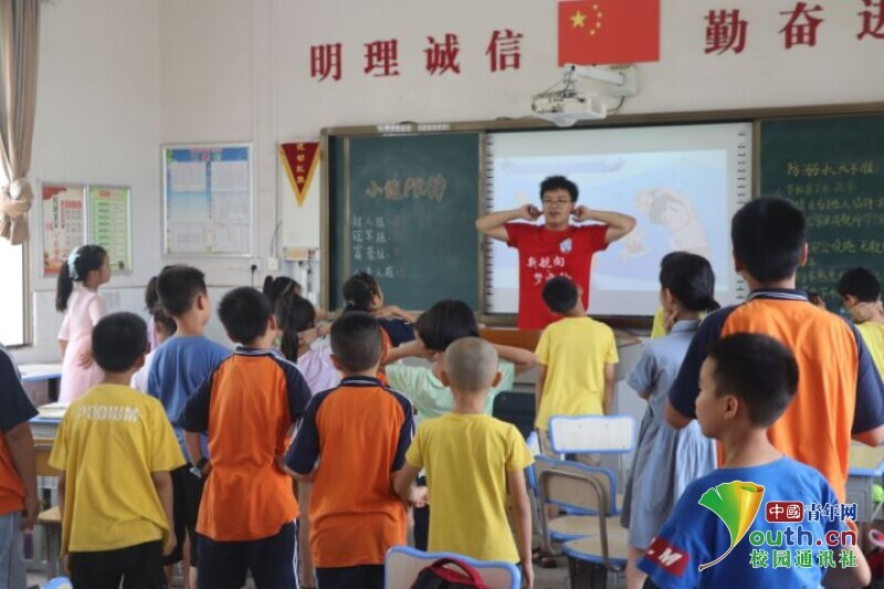 图为队员向小朋友们讲授防溺水“六不准”。中国青年网通讯员 段新利 摄