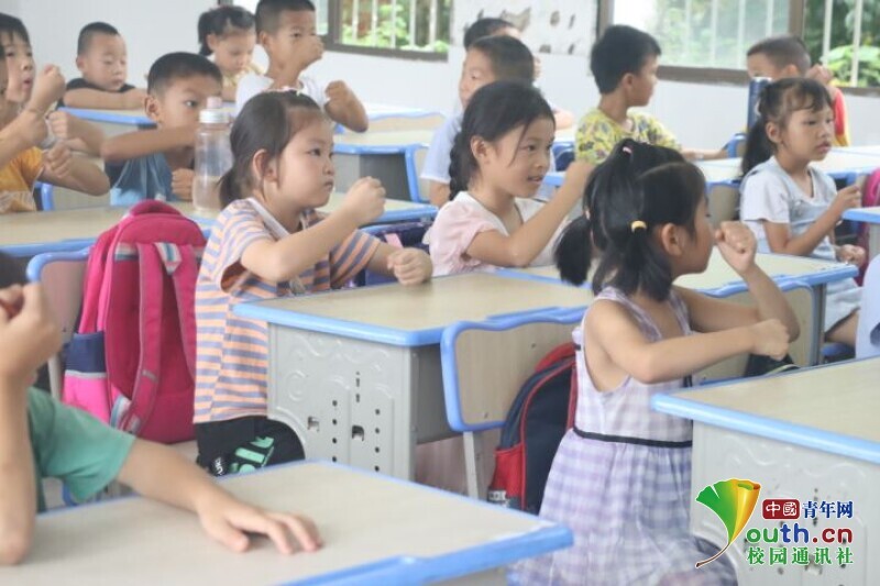 图为孩子们在手语兴趣班上认真地学习手语动作。中国青年网通讯员 段新利 摄