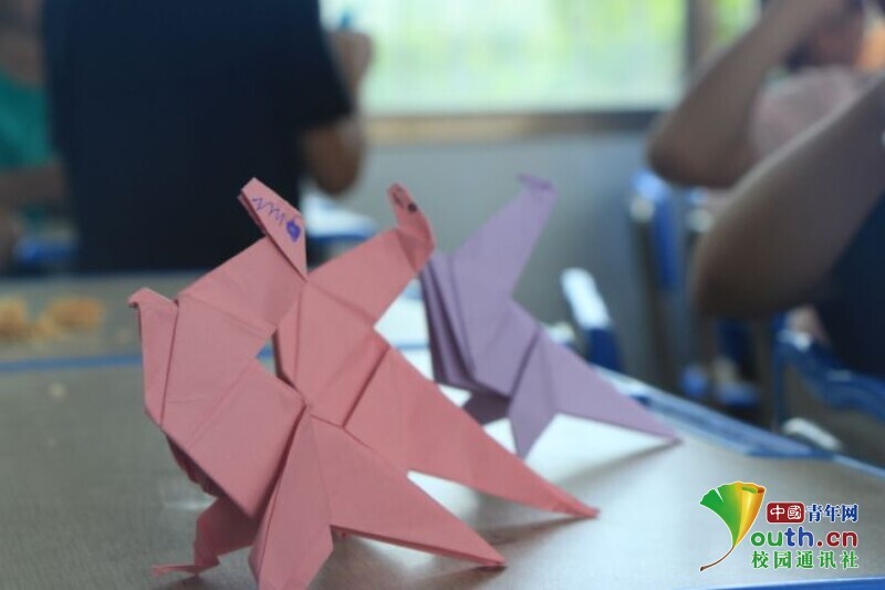 图为手工兴趣班上“小老师”手把手教孩子们折他们最爱的“小恐龙”,孩子们兴致勃勃地围着“小老师”。中国青年网通讯员 王彬艳 摄