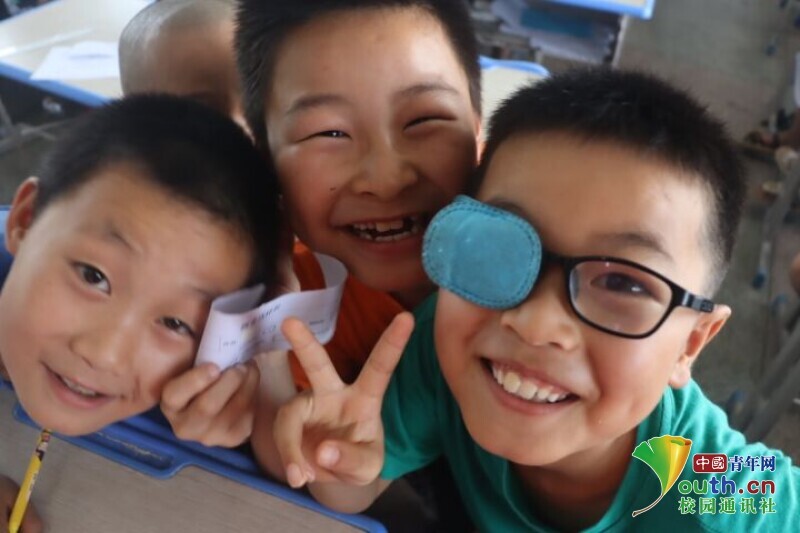 图为孩子们争先恐后地对着镜头绽放灿烂的笑容。中国青年网通讯员 段新利 摄