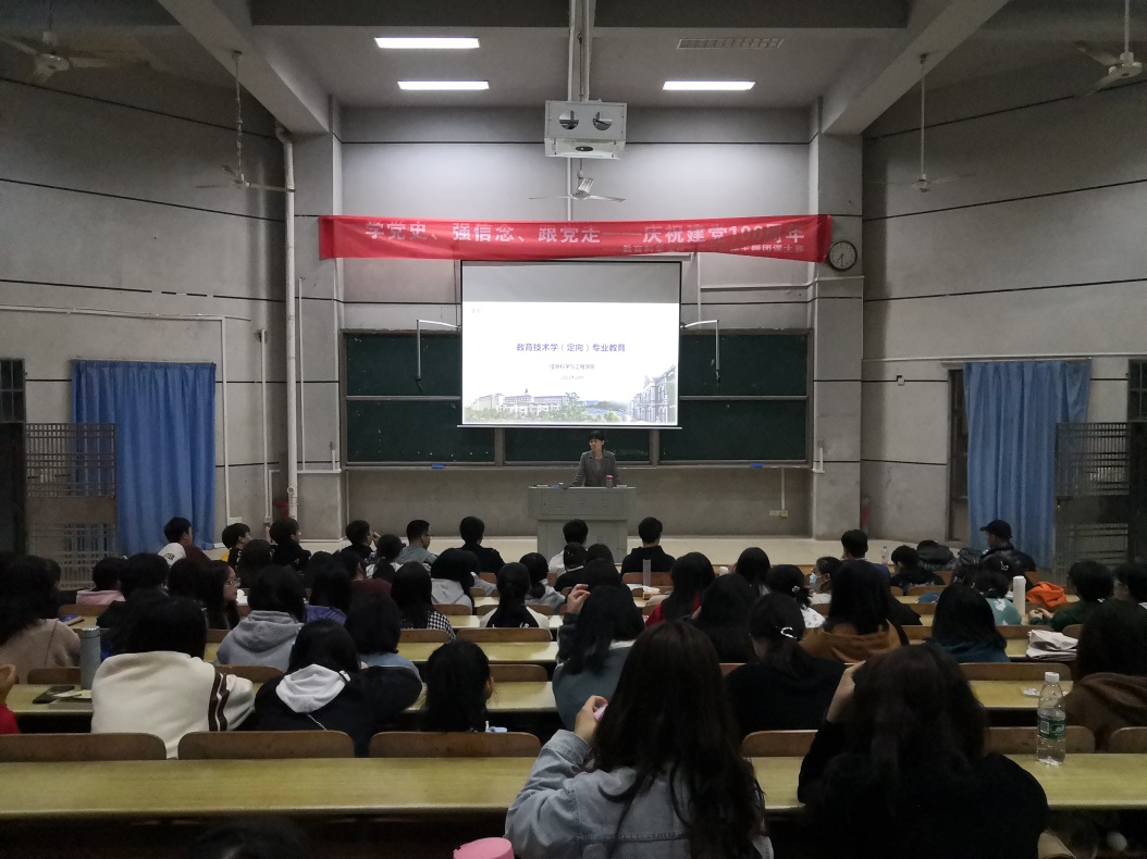 10月31日晚上,公司面向21级881-882教技班在怀中南110开展教育技术学(定向)专业指导活动。活动由小学信息技术教育教研室主任黄悦主讲。